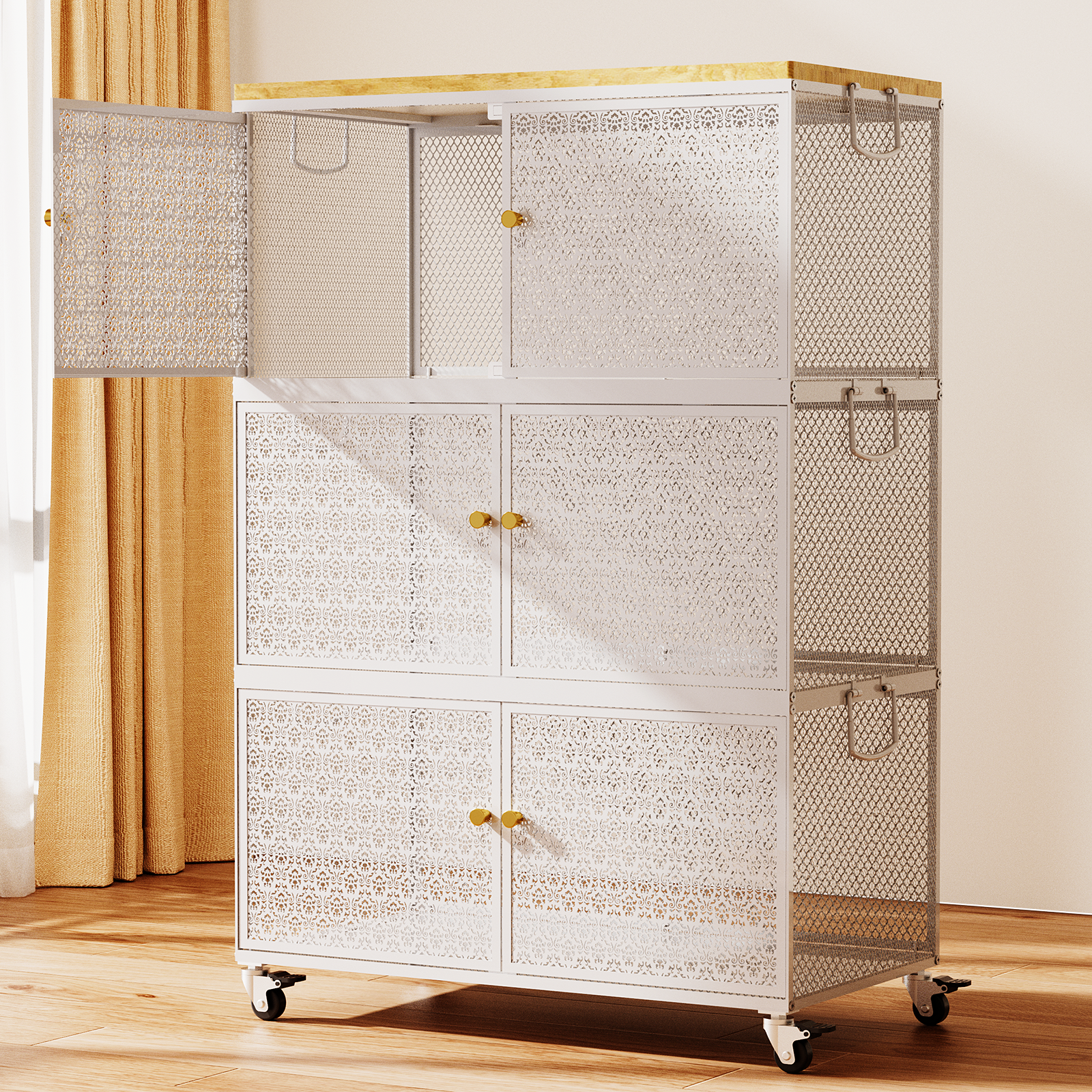 - APONWILL 3 Tier Heavy-Duty Storage Bins and Boxes Organizer, Magnetic Doors & 360°Swivel Lockable Wheels, Easy,labor-Saving, Ocean Life Cutout Pattern, Eco-Aesthetic for Living Room,Bedroom,Metal